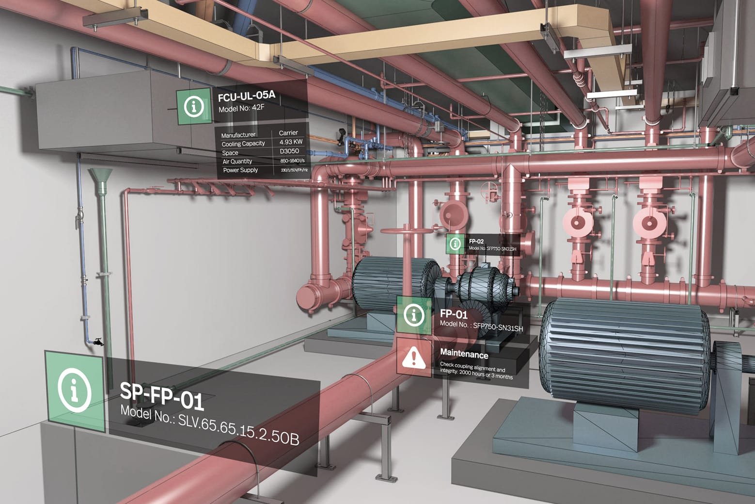 Desarrollo de modelos con información para la etapa de operación y mantenimiento. Estos se incorporan a softwares del área que permiten la visualización tridimensional de los elementos que lo componen.